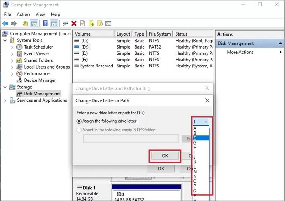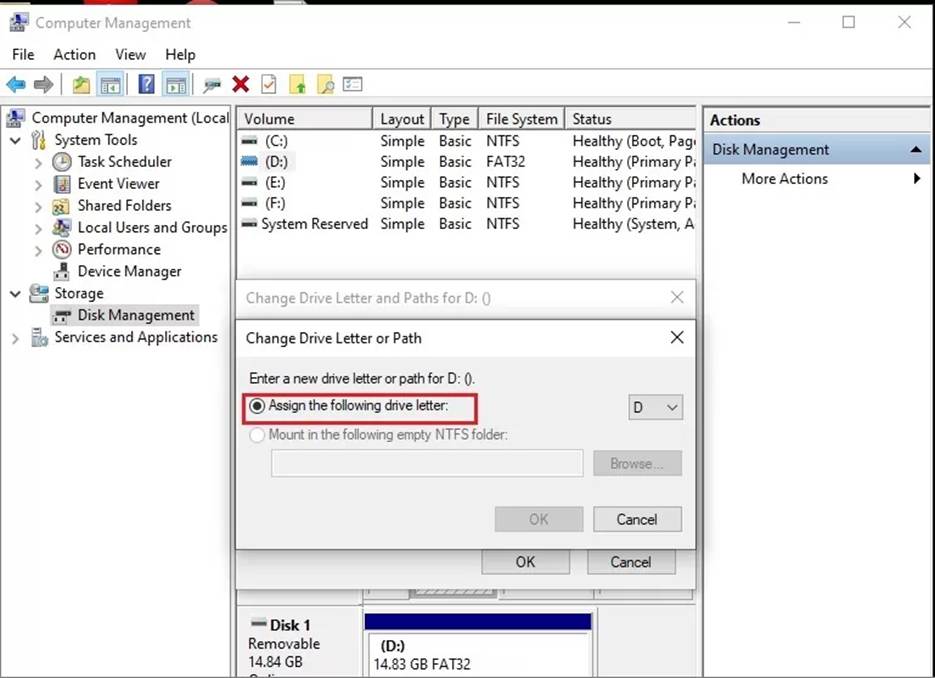 Instances may occur where your SD card is properly connected and recognised by your system, but it does not appear in File Explorer or shows as inaccessible. This mainly happens if the card has lost its drive letter assignment. In such a case, you can follow the below steps to assign a new drive letter to your SD card and make it recognisable again: