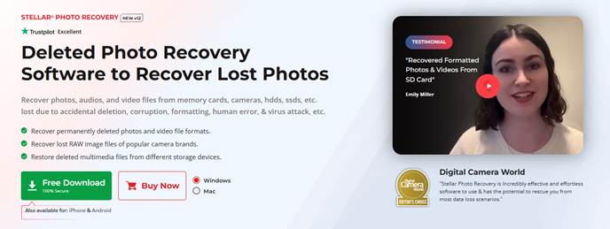 If the above method to recover photos from corrupted or unreadable SD card seems difficult, you can use third-party photo recovery software. Tools like Stellar Photo Recovery are designed to scan the card at a deeper level, allowing you to restore all the lost/deleted files easily. These tools allow you to recover photos deleted due to accidental deletion, formatting, system errors, or any other reason.